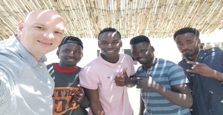 “Een van de opvallendste verhalen was van de jongen die al twee jaar onderweg was uit Sudan,” vertelt Wim. Op de foto staat deze jongen rechts van het midden (met het gestreepte shirt). “Hij was 16 jaar toen hij vertrok, eerst naar Tunesië, daarna teruggestuurd naar Liberia, via Niger en Algarije uiteindelijk in Marokko aangekomen. Daar probeerde hij het zes meter hoge hek bij Ceuta over te klimmen, maar werd hij tegengehouden door de Marokkaanse politie, die hem honderden kilometers terugbracht naar Algarije. En toch was hij er nu: hij had gehaald. Hij gaf niet op, want hij wist dat in Ceuta hoop voor hem was om in Europa aan te komen!”